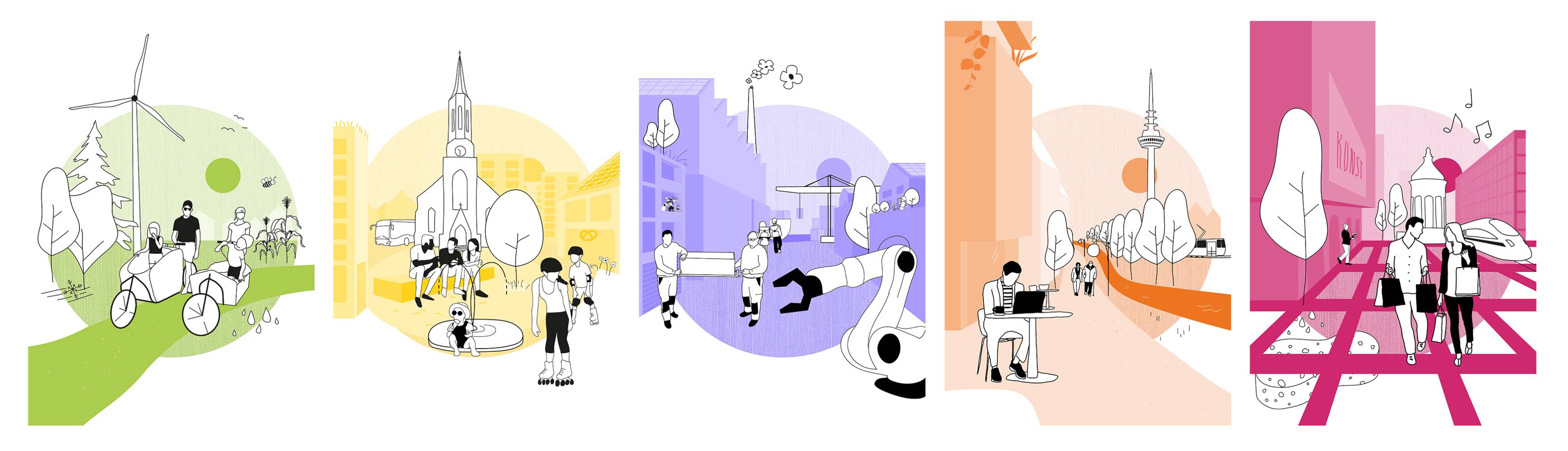 Vier sektorale Szenarien visualisieren mögliche Zukünfte