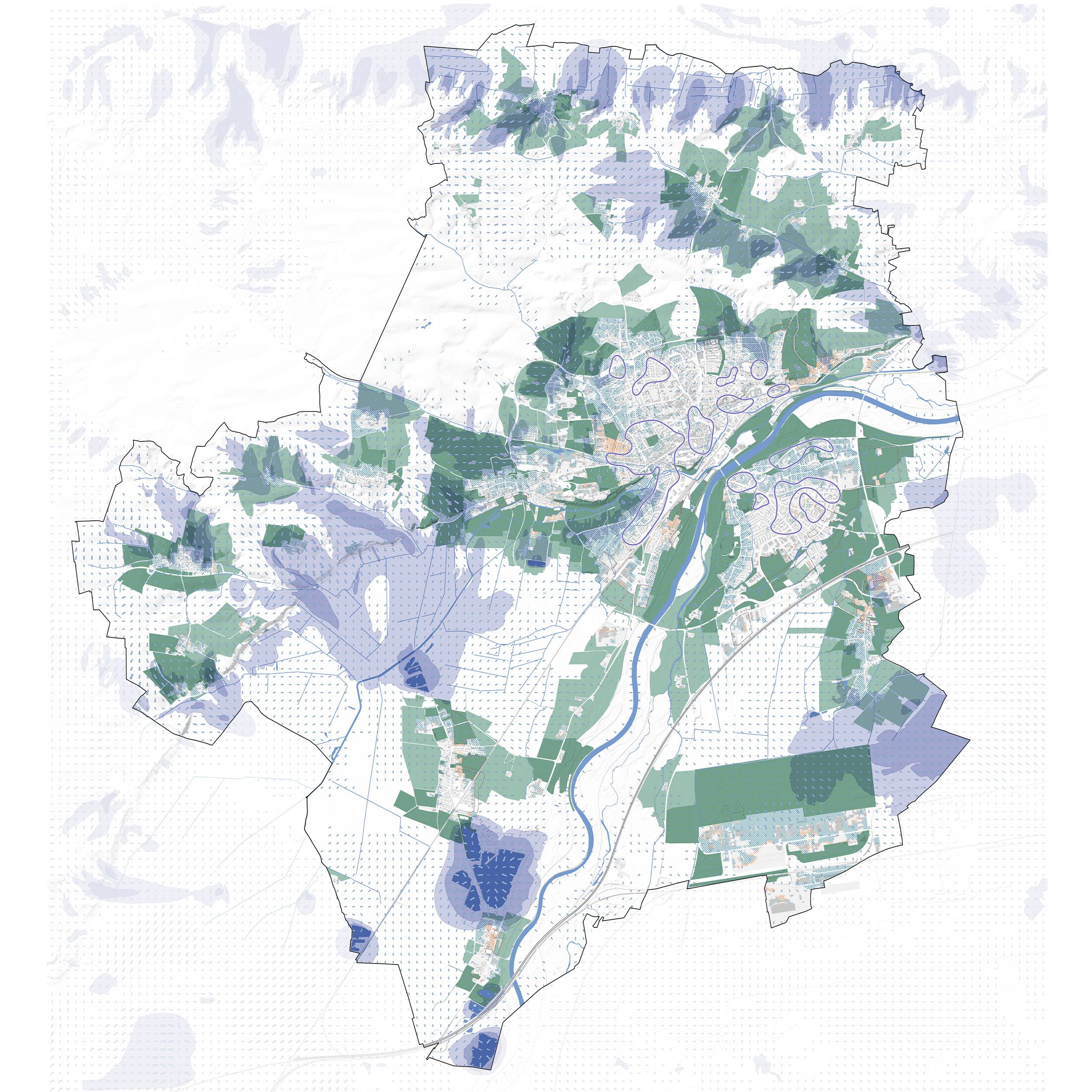 Auf gesamtstädtischer Maßstabsebene formulieren Konzeptpläne in verschiedenen Themenfeldern den Weg zur klimaangepassten Stadt Freising. Welche Bereiche sind für die Versorgung der Stadt mit nächtlicher Kaltluft besonders wichtig und daher sensibel zu beplanen? Wie kann der Zugang zu Hitzeentlastung, also in große und kleine Grünräume verbessert werden? Wo gilt es, die potenzielle Gefährdung durch Starkregenereignisse zu minimieren?