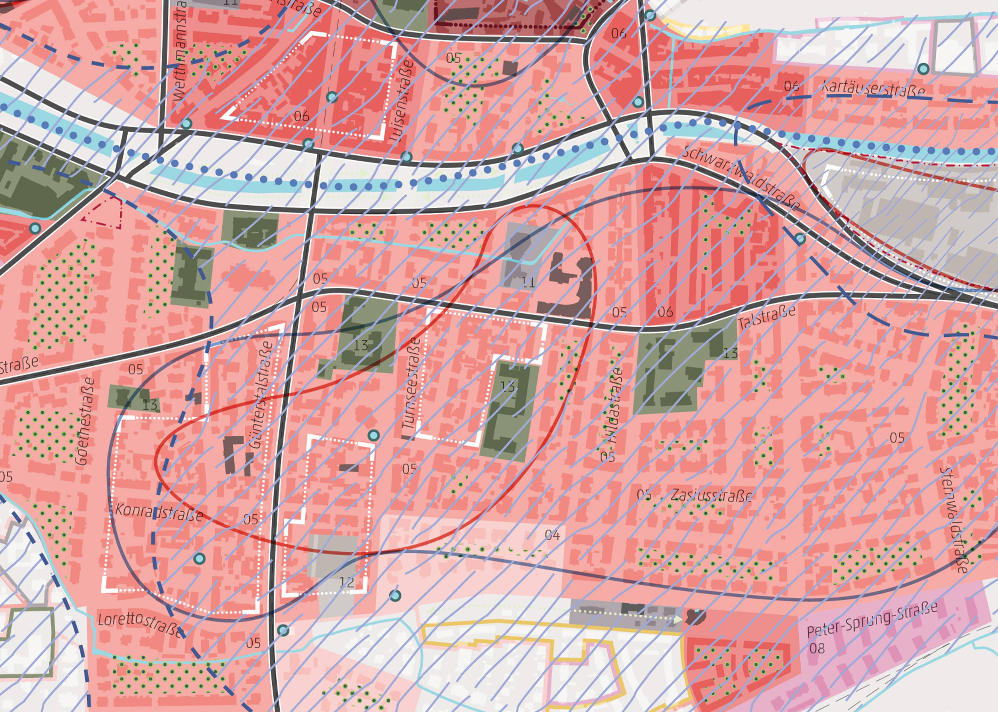 Die Stadt Freiburg im Breisgau zählt aufgrund ihrer geografischen Lage im Oberrheingraben zu den Orten mit den höchsten Durchschnittstemperaturen in Deutschland und spürt bereits heute die Auswirkungen des Klimawandels auf das Wohlbefinden und die Gesundheit ihrer Bewohner:innen. Um den zukünftig noch deutlich anwachsenden Belastungen aktiv und vorausschauend zu begegnen, lässt die Stadt Freiburg ein Klimaanpassungskonzept im Handlungsfeld „Hitze“ von berchtoldkrass und GEO-NET erarbeiten, das auf Basis einer präzisen gesamtstädtischen Analyse konkrete Anforderungen und Handlungsbedarfe für die verschiedenen und insbesondere sehr verschieden betroffenen Gebiete der Stadt ermittelt und Lösungsvorschläge auf mehreren Maßstabsebenen formuliert.