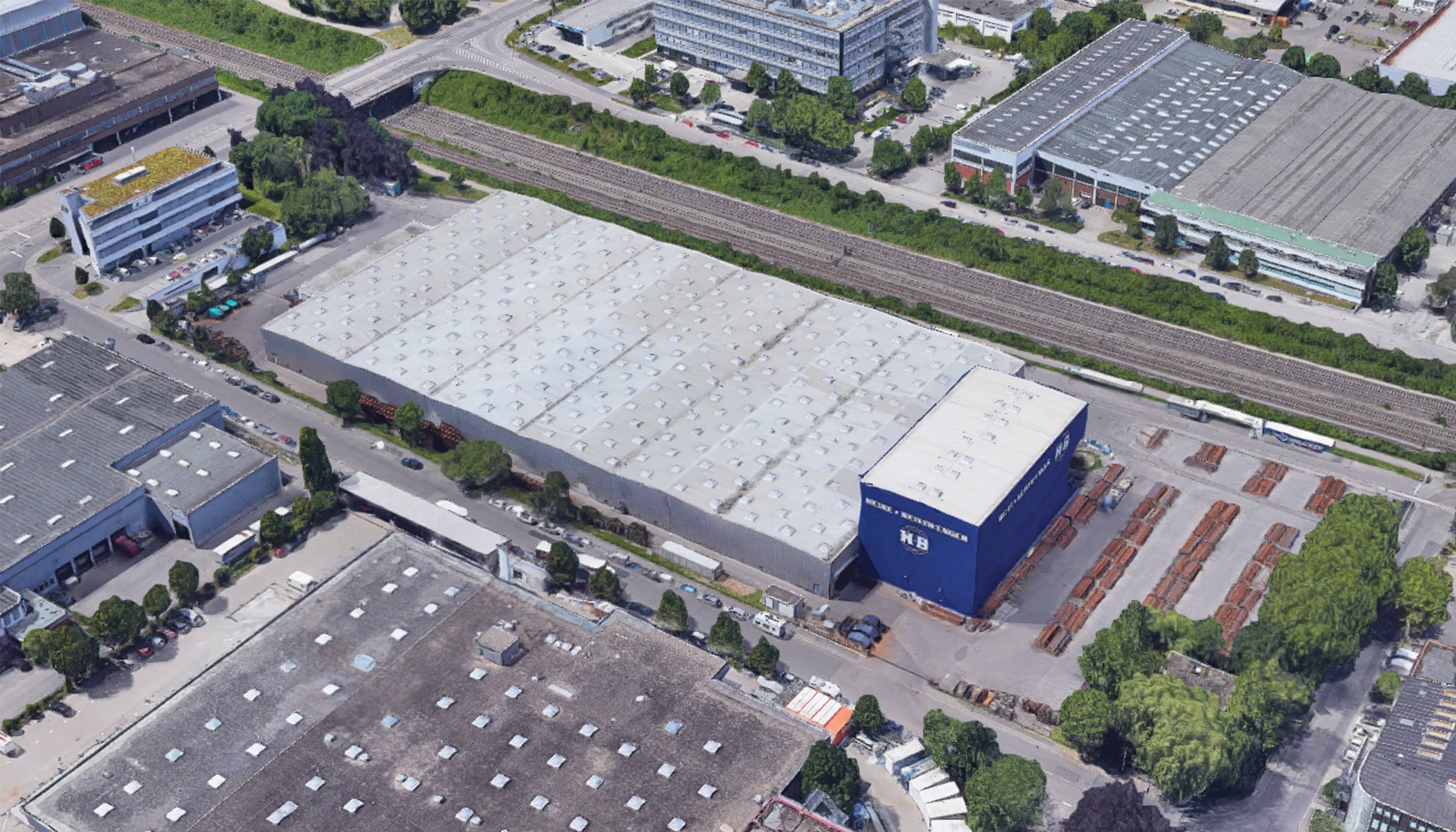 Der Testentwurf „Rooftop-Farm auf großer Halle“ umfasst in der heutigen Situation eine große Lager- und Distributionshalle mit rund 150 Metern Länge und 80 Metern Tiefe mit ca. 11.000m² Dachfläche. Die Halle wird derzeit durch ein kompaktes Hochregallager an der Kopfseite ergänzt. Für die Anlieferung und Lagerung des Stahls sind großzügige Flächen auf dem Grundstück freizuhalten.