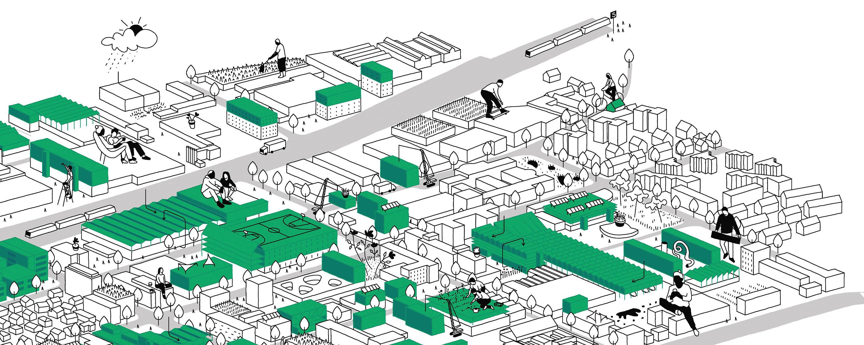 Eine geringe Flächeneffizienz und bauliche Dichte stehen einem hohen Nachfragedruck nach Gewerbe- und Wohnbauflächen sowie Flächen zur landwirtschaftlichen Produktion im Untersuchungsraum entgegen. Das Projekt zeigt Möglichkeiten zur Neustrukturierung und Expansion im Bestand durch eine effiziente Flächenausnutzung, vertikale Stapelung und Nutzungsmischung auf. Zusätzlich werden Potenzialflächen, wie Fassaden und Dächer, hinsichtlich einer potenziellen landwirtschaftlichen und klimawirksamen Nutzung untersucht.