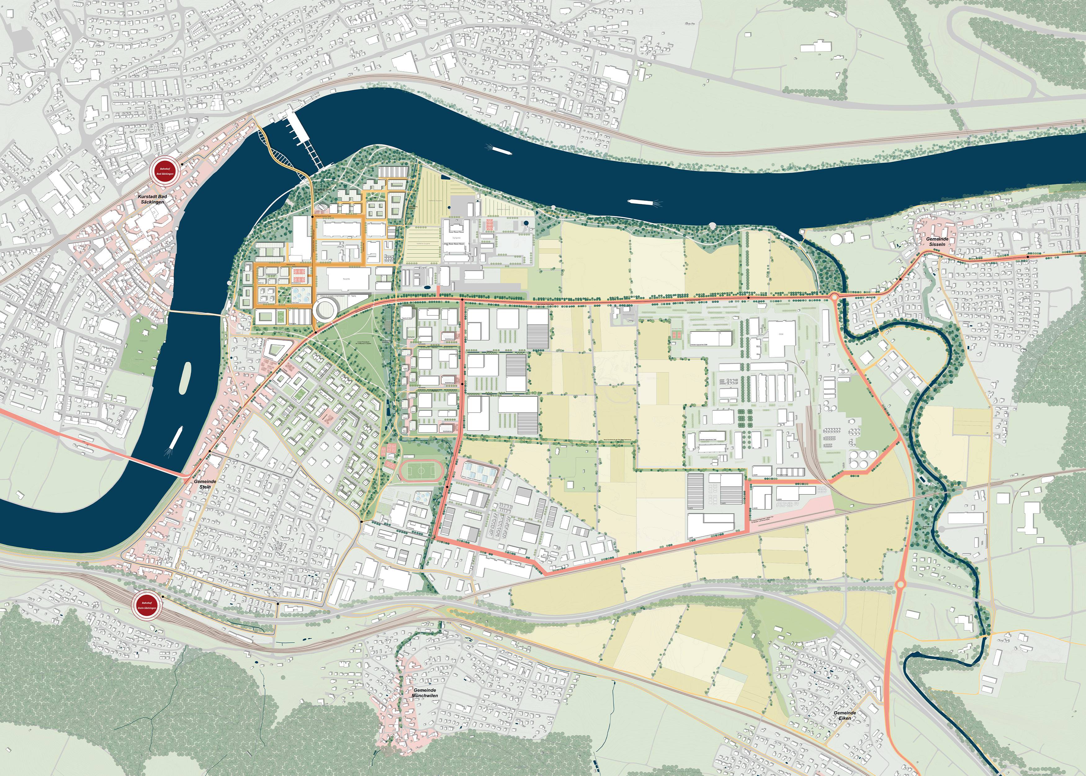 Das integrale Gesamtkonzept trägt nicht nur dem Kulturgut der Grenzenlosigkeit mit beispielsweise einer neuen Fußgänger-, ÖV- und Velobrücke als Leuchtturmprojekt für die Region in einem hohen Maß Rechnung, sondern schafft mit den vier unterschiedlich ausgerichteten Teilgebieten des Entwurfs einen hohen Standortfaktor für die Ansiedlung von Betrieben aus den unterschiedlichsten Branchen.